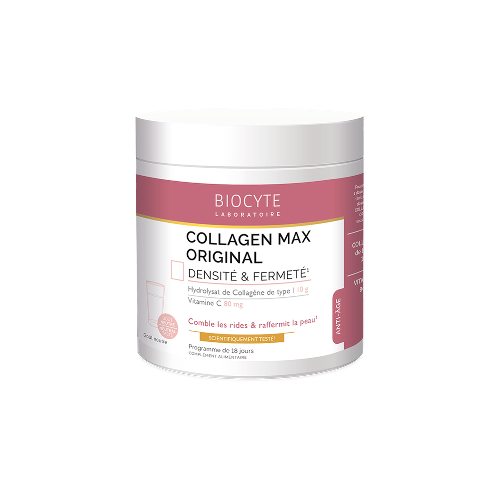 Дієтична добавка у формі розчинного порошку на основі 10 г гідролізату бичачого колагену типу I та вітаміну С. Починаючи з 25 років ми втрачаємо 1% колагену на рік, у шкіри знижується пружність та еластичність, з’являються зморшки. Collagen Max Original – ідеальний продукт із нейтральним смаком, відмінно підходить для напоїв, таких як соки та смузі, або для приготування їжі, можна приймати з гарячими напоями, оскільки не містить гіалуронової кислоти.