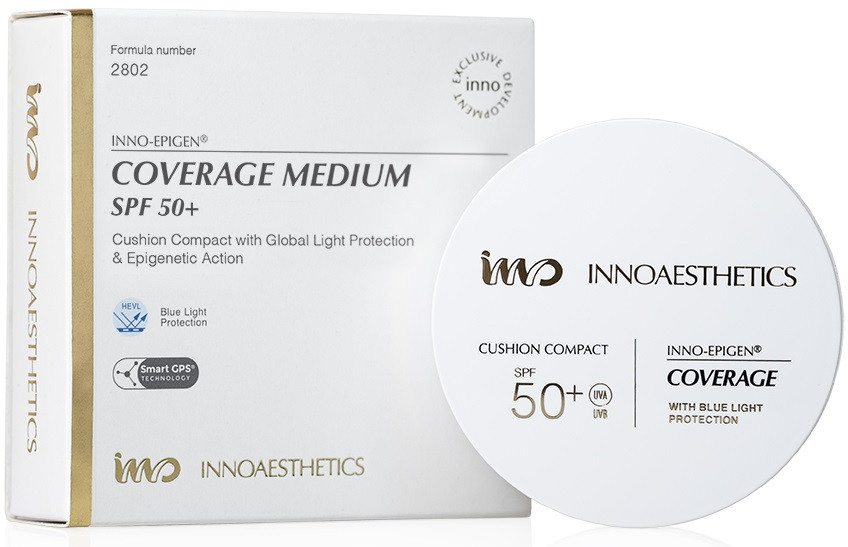 Компактна тональна основа у форматі кушона EPIGEN COVERAGE Light UVP 50+, INNOAESTHETICS, 14g