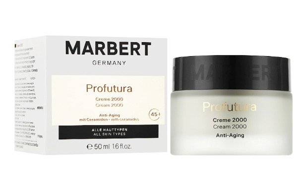 Для ефективної боротьби з яскраво вираженими ознаками вікових змін професіоналами бренда Marbert був розроблений інноваційний крем Profutura Creme 2000. Завдяки вмісту активних запатентованих комплексів з потужними омолоджувальними властивостями він сприяє покращенню структурних характеристик шкіри, розгладжує зморшки та ефект ліфтингу.