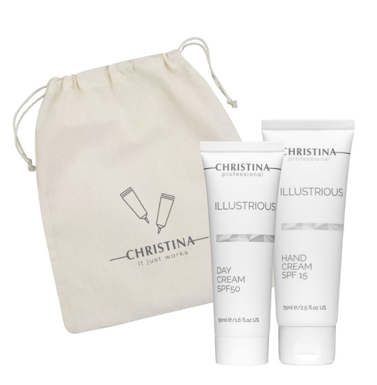 Денний крем SPF 50: Зменшує пігментацію, запобігає утворенню нових темних плям. Гіалуронова кислота забезпечує зволоженою, робить шкіру яскравою і сяючою. Захисний крем для рук SPF 15: Захищає від сухості та сонячних пошкоджень, зменшує появу пігментних плям та ознак старіння на руках.