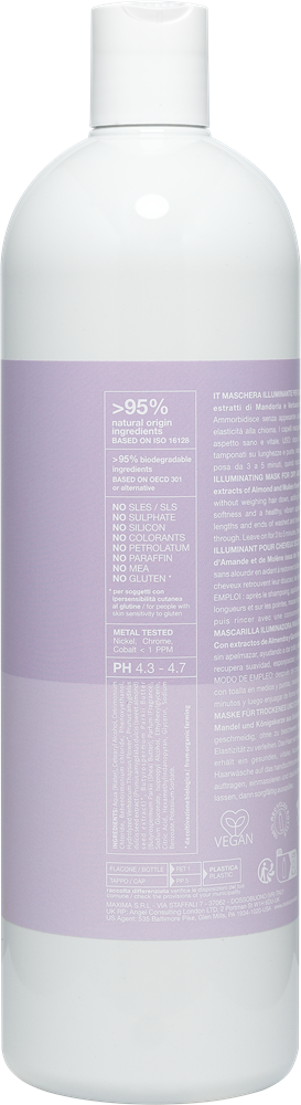 Глибоко живить волосся, повертає йому життєву силу і здоровий вигляд. Надає м'якості та інтенсивного блиску без обтяження, покращує еластичність. Ідеально підходить для сухого та тьмяного волосся як тонкого, так і щільного жорсткого. pH 4.3 / 4.7