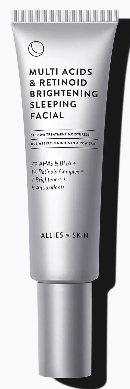 Нічний мультикислотний пілінг запускає процеси оновлення, зменшує видимість пор та розгладжує рельєф. Вранці шкіра стає гладкою і сяє без слідів стресу та втоми. Пілінг ефективно покращує зовнішній вигляд шкіри, відлущує ороговілі клітини, робить шкіру гладкою та бархатистою. Пом'якшує сухі ділянки, підвищує рівень зволоженості, усуває зневоднення. Освітлює небажану пігментацію та постакне, вирівнює тон обличчя та надає шкірі здорового сяйва. Головним інгредієнтом пілінгу, що діє, є комплекс кислот (7%): Гліколева кислота видобувається з винограду та цукрової тростини. Дбайливо відлущує ороговілий шар, вирівнюючи рельєф обличчя і покращуючи тон. Стимулює вироблення колагену, підвищує щільність та пружність шкіри. Молочна кислота м'яко відлущує ороговілий шар епідермісу, стимулює процеси загоєння та оновлення, та сприяє синтезу керамідів.Розгладжує мікрорельєф, покращує колір обличчя, зменшує розміри пор та загоює. Саліцилова кислота відлущує ороговілі клітини шкіри, стимулює клітинне оновлення, надає антимікробну дію, нормалізує pH шкіри та роботу сальних залоз, покращує колір обличчя. Пілінг має легку гелеву текстуру. Не містить ефірних олій, силіконів, сульфатів, спирту, синтетичних барвників та ароматизаторів. Чи не тестується на тварин. Після очищення і тонізування шкіри нанести 3-6 доз засобу. Уникайте області навколо очей. Чи не змивати. Використовуйте 2-3 ночі поспіль. Чи не для повсякденного використання. Попередження про сонячні опіки: цей продукт містить альфа-гідроксикислоту (AHA), яка може підвищити чутливість шкіри до сонця і, зокрема, підвищити ймовірність сонячних опіків. Використовуйте сонцезахисний крем.