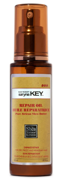 Відновлювальна Олія Ши Saryna Key Damage Repair містить в своєму складі олію Ши — природне джерело кератину для відновлення волосся. Олія Ши обволікає волосся, роблячи його м’яким, еластичним, блискучим і зволоженим. Вітаміни і амінокислоти проникають всередину волосся і відновлюють його від коренів до самих кінчиків. Засіб легко вбирається і не залишає жирного блиску на волоссі.