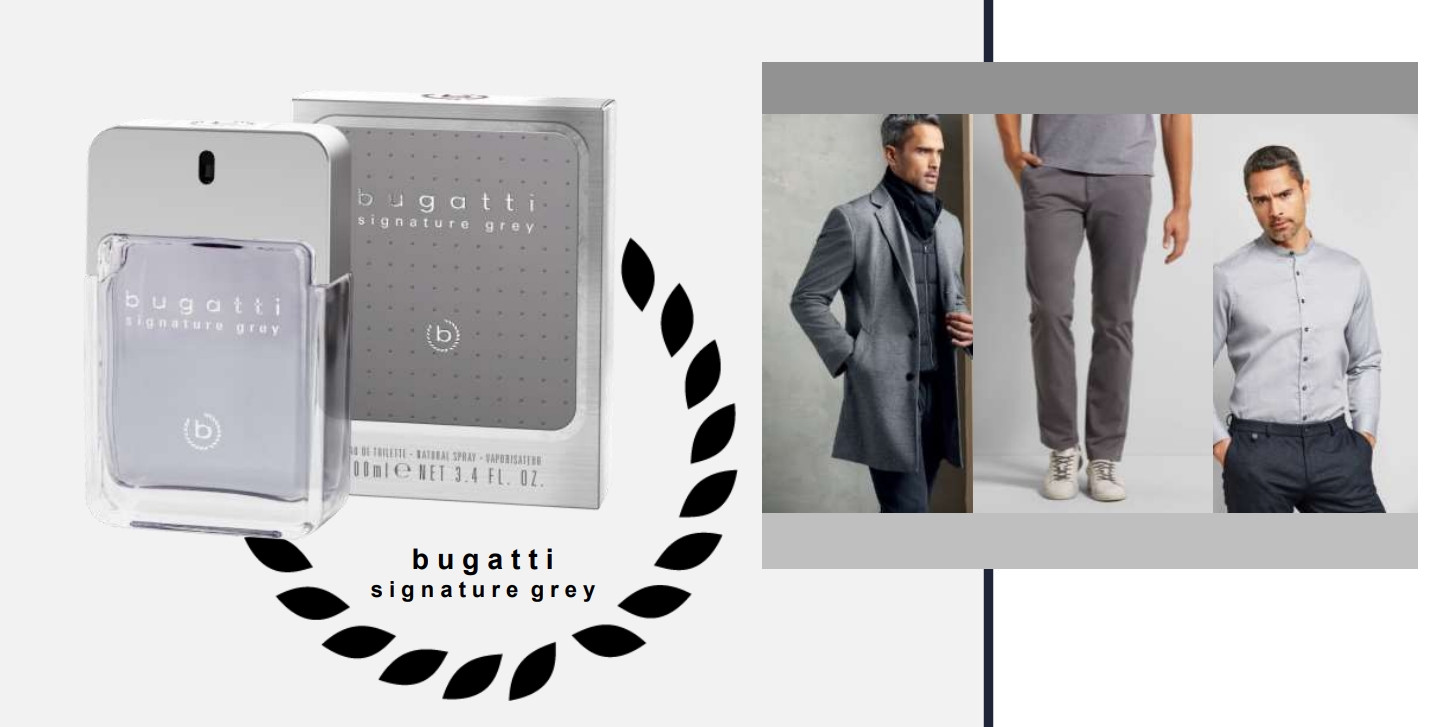 Signature Grey вражає своїм свіжим і нехитрим стилем. Верхня нота - це поєднання пряного рожевого перцю та свіжого цитрусового бергамоту, що створює захоплюючу привабливість. Нота серця зосереджена на чоловічих деревних відтінках. Ніжний чоловічий відтінок шкіри поєднується з гірко-солодким ароматом ветівера, передаючи глибину та незмінну якість. Жимолость, дерево елемі та уд створюють чарівну, привабливу теплу ноту. Довготривала базова нота поєднує в собі трав’янистий, землистий аромат пачулі та солодкість какао. Бурштин і мох створюють теплий темний компонент.