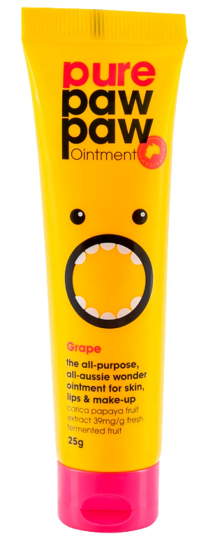 Відновлюючий бальзам для губ Pure Paw Paw Ointment Grape стане справжнім порятунком для обвітреної, втомленої шкіри, що лущиться. Продукт має густу консистенцію, легко наноситься, не залишає по собі неприємного липкого та жирного шару, не відчувається як плівка. Засіб містить екстракт папайї, який володіє унікальними властивостями, що відлущують. Даний екстракт делікатно видаляє ороговілий шар клітин за рахунок фруктових кислот, а не механічної дії, не травмує ніжний епідерміс, не викликає кровоточивість губ. Бальзам бореться із сухістю шкірного покриву, захищає його від агресивного впливу зовнішнього середовища, пом'якшує, прискорює загоєння ранок, тріщин та виразок. Засіб випускається з різними ароматами, серед яких кожен зможе вибрати саме те, що доведеться йому до душі.