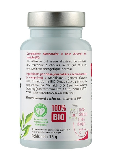 Добавка дієтична у таблетках, це харчова добавка, виготовлена з шиітаке, гриба органічного сільського господарства, багатого вітаміном B12.