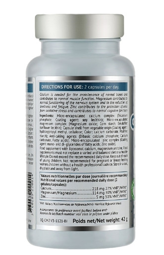 Несбалансированное питание, стресс и некоторые заболевания могут постепенно привести к деминерализации организма и, следовательно, к дефициту минералов. Эти недостатки вызывают дисбаланс нервной системы (стресс, усталость, проблемы с концентрацией ...), а также ломкость костей и мышц. Кальций - самый распространенный минерал в организме. Это основной компонент костей и зубов. Он также играет важную роль в свертывании крови, поддержании артериального давления и сокращении мышц. Магнеум способствует здоровью зубов и костей, функции иммунной системы и сокращению мышц. Он также играет роль в производстве энергии и передаче нервных импульсов. Цинк играет важную роль в росте и развитии организма, иммунной системе и исцелении, а также в неврологической и репродуктивной функциях. Каждый из этих минералов заключен в микрокапсулы, чтобы улучшить их усвоение и, таким образом, максимизировать их эффективность!